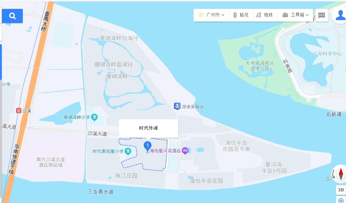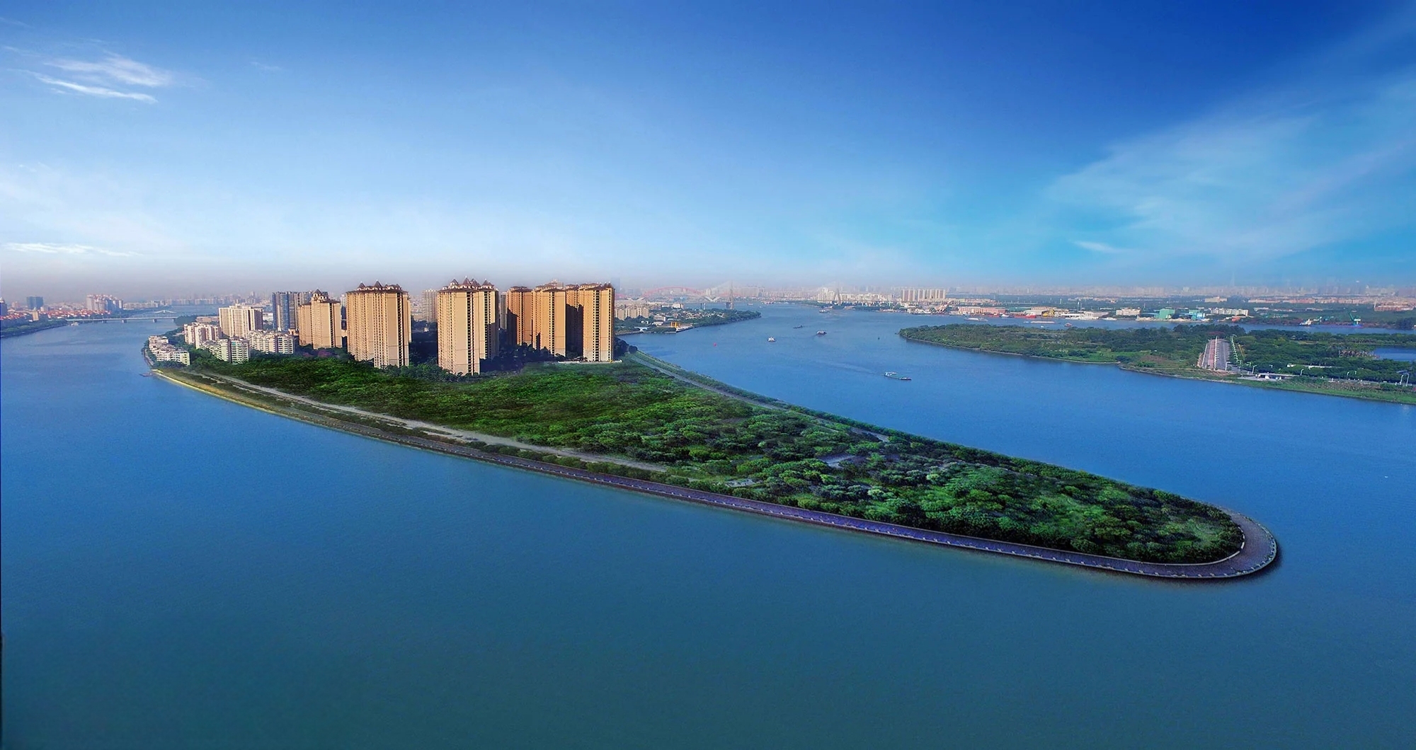笔者有位一又友就住在珊瑚湾畔的临江别墅区,站在楼顶可同期将大学城、海珠湿地和小洲艺术村尽收眼底;谈路南边的鱼脖位置,即期间外滩和珠江花圃。在地形上,珠江花圃和海怡半岛花圃是夹着期间外滩的,抢占了南边通盘一线江景位置。